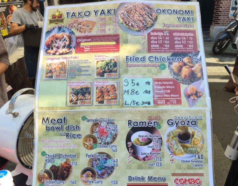 하이네켄 박물관에서 너무나도 즐겼는지 슬슬 배가 고파오기 시작했어요. 암스테르담에 오면 꼭 가보고 싶었던 가게가 있었는데 오사카볼(OsakaBall)이라는 타코야키 가게입니다. 암스테르담에서 웬 타코야키냐고 생각이 드실 수 있겠지만 이 가게에서 운영하는 축제팀이 있습니다. 이 팀은 독일 및 여러 지역의 축제에 돌아다니며 타코야키를 판매하고 있지요. 저도 뒤셀도르프에 갔다가 이 팀을 만났었는데 지금까지 먹어본 타코야키 중 정말 최고였습니다. 그래서 관심을 가지고 지켜보다가 암스테르담에 가게가 있다는 것을 알고 방문하게 되었지요.