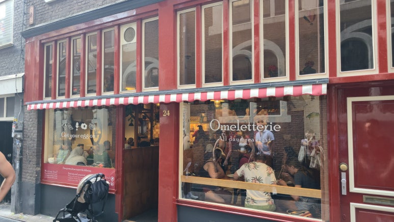 열차를 타고 중앙역에 도착을 하니 관광객들이 정말 많이 보이더군요. 암스테르담은 경유를 하면서도 많이들 둘러보기에 아침부터 정말 많은 관광객들이 있는 것 같았습니다. 금강산도 식후경! 안네의 집 예약 시간까지는 약간 여유가 있어서 브런치 식당에 가서 식사를 했습니다. 중앙역에서 가깝기도 하고 구글 평점도 좋고 리뷰에 사진을 봤을 때도 오믈렛이 맛있어 보였기에 방문해 봤습니다. 이름 또한 Omelegg인데 오믈렛을 안 시켜볼 수 없겠지요.