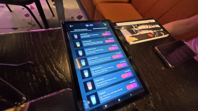 원하는 메뉴를 선택하면 로봇이 칵테일을 만들기 시작합니다. 정해진 양의 재료를 컵에 담고 흔들어 섞는 모습을 보면 참으로 재미가 있었어요. 누군가 칵테일을 시킬 때마다 저처럼 다들 로봇 앞에 와서 사진을 찍고 동영상을 찍더군요. 음식 자체는 맛이 그냥 그렇고 비싸다고 느껴지긴 하지만 그래도 색다른 경험을 한 값이라고 생각합니다. 하지만 적극 추천을 드릴 수는 없는 곳이긴 합니다. 그래도 방문해 보고 싶으시다면 음식을 말고 칵테일만 주문해 보시길 추천드립니다.