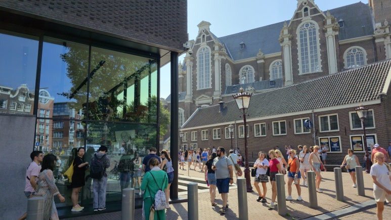 안네의 집 앞에 도착하니 많은 사람들이 대기를 하고 있었습니다. 티켓마다 정해진 입장 시간이 있어서 시간에 맞춰 도착을 하셔야 합니다. 미리 티켓을 구해야 한다는 것을 모르는 관광객들도 많이 보였었습니다. 티켓 구매를 물어보는 관광객들에게 대답은 매진이라는 답변뿐이었어요. 아픈 현대사에 관심이 많이 있으시다면 안네의 집 방문을 적극 추천드립니다만 티켓을 못 구하셨더라도 실망하지는 마세요. 암스테르담은 다른 볼거리들이 정말 많아요.