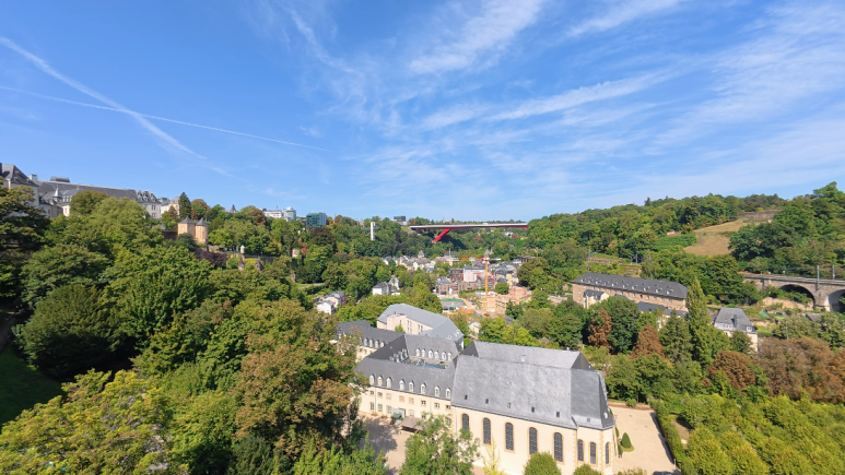 룩셈부르크 시내는 그리 크지 않습니다. 주변 주거 지역들까지 다 합치 면야 크긴 하겠지만 여행객들이 다니는 중심가는 걸어서 금세 둘러볼 수 있지요. 룩셈부르크 시내의 큰 특징으로는 이 도심이 절벽 위에 들어서 있다는 것입니다. 예전에는 외적의 침입을 막기 위해 이런 곳에 도시를 지었었겠지요. 이 절벽 위쪽뿐만 아니라 아래쪽에도 마을이 있습니다. 이 절벽 윗마을과 아랫마을을 연결해 주는 엘리베이터도 갖추고 있어요. 그 엘리베이터 중 하나는 투명한 유리로 바깥을 볼 수 있게 되어 있어 룩셈부르크 아랫마을을 둘러볼 수도 있게 되어있어 관광객들에게 인기가 많습니다.